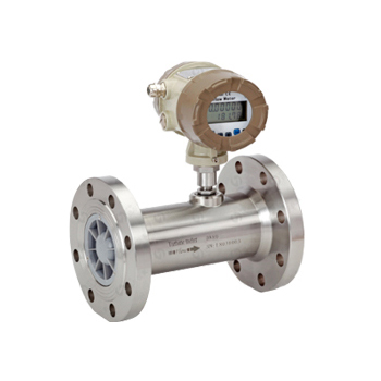 当流体流入气体涡轮流量计时,在进气口专用一体化整流器的作用下整流并加速,由于涡轮叶片与流体流向成一定角度,此时涡轮产生转动力矩,在克服摩擦力矩和流体阻力矩后,涡轮开始旋转。在一定的流量范围内,涡轮旋转的角速度与流体体积流量成正比。根据电磁感应原理,利用磁敏传感器从同轴转动的信号轮上感应出与流体体积流量成正比的脉冲信号,该信号经放大、滤波、整形后与温度、压力传感器信号一起进入气体涡轮流量计表头的微处理单元进行运算处理,并把气体的体积瞬时流量和累积流量计直接显示于LCD屏上。