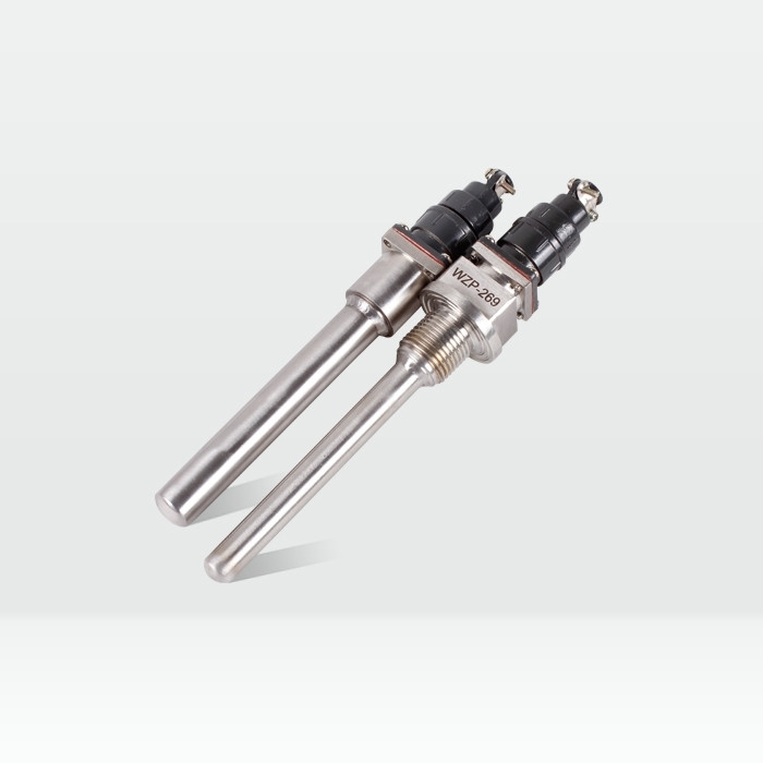WZP型铂电阻的感温元件是一个铂丝绕组,双支铂电阻主要用于需要两套显示、记录或调节仪同时检测同一地点温度的场合。WZC型铜电阻的感温元件是一个铜丝绕组。