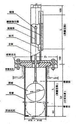 顶装式磁浮子液位计根据浮力原理和磁性耦合作用原理工作的。当被测容器中的液位升降时,液位计主导管中的浮子也随之升降,浮子内的磁钢通过磁耦合传递到现场指示器,驱动红白翻柱转180°,当液位上升时,翻柱由白色转为红色,当液位下降时翻柱由红色转为白色,指示器的红、白界位处为容器内介质液位的实际高度,从而实现液位的指示。