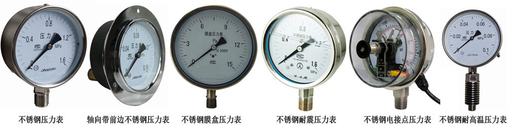 (4)全不锈钢压力表分普通型和耐震型。