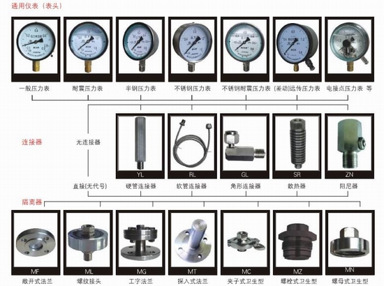 三、隔膜压力表型号及名称(根据上表选择连接方式代码):