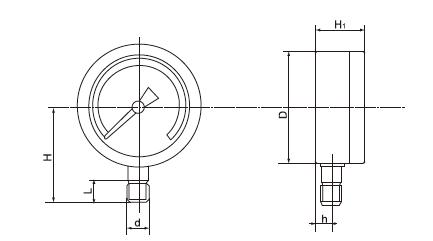 4.耐腐耐高温特种压力表外形尺寸图: